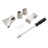 Технический фен Denzel HG-2000M подходит для снятия лака и краски с различных поверхностей, размораживания и пайки труб, создания изгиба в пластиковых деталях, генерации точечного теплового потока для нагрева небольших участков и др. Справиться с этими задачами ему помогает треугольный скребок и насадки: плоская, полукруглая, отражающая и редукционная. Мощность фена 2 кВт обеспечивает стабильную производительность на уровне 250/500 л/мин, в зависимости от выбранного режима. Температура выходящего потока составляет 50/50-450/50-600 °C. Преимущества: Фен работает в трех режимах: низкая производительность с выбором температуры, высокая производительность с выбором температуры и режим продувки. Последний помогает охладить фен и исключить тепловой удар после отключения. Плавная аналоговая настройка температуры обеспечивает выполнение целого спектра задач — от деликатного просушивания до сварки и пайки. Двухуровневая защита отключает фен при возникновении риска перегрева или перегрузки. Это позволяет избежать поломок и сохранить рабочий ресурс инструмента. Переключатель режимов от известной марки Defond безупречно справляется со своими задачами даже спустя длительное время. Конструкция корпуса позволяет надежно зафиксировать фен в вертикальном положении соплом вверх без использования подставок. Такое решение помогает избежать отключения при перерыве в работе. D-образная ручка защищает руку оператора от получения ожогов из-за соприкосновения с раскаленной поверхностью или обратного потока горячего воздуха. Трехметровый сетевой кабель позволяет расширить зону использования фена и увеличить его маневренность, не используя удлинитель. Резиновая изоляция на кабеле позволяет без риска поломки работать при низких температурах. Небольшой вес фена 940 грамм обеспечивает комфорт даже при длительном использовании.