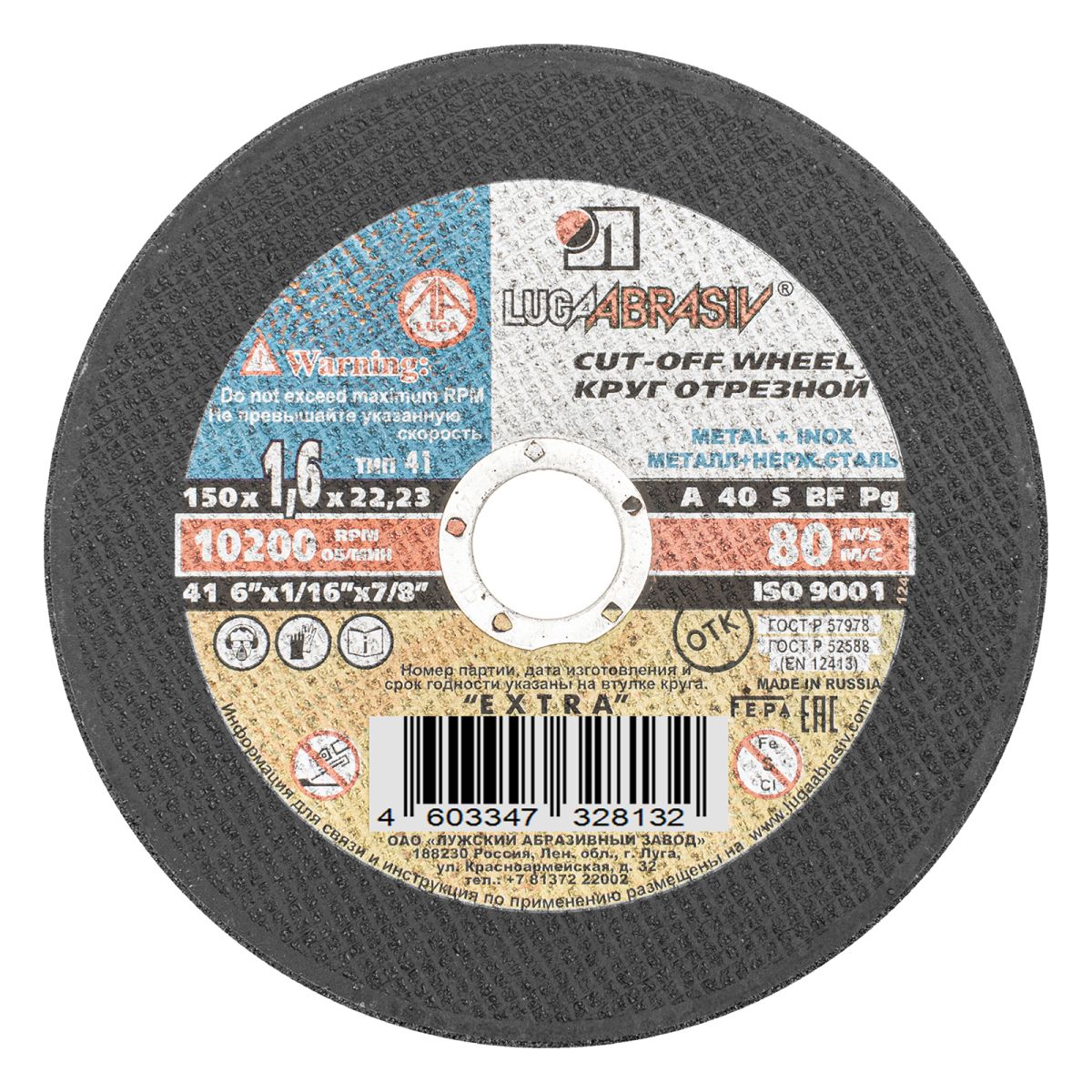 Круг отрезной 150х1.6x22.2 мм для металла LUGAABRASIV